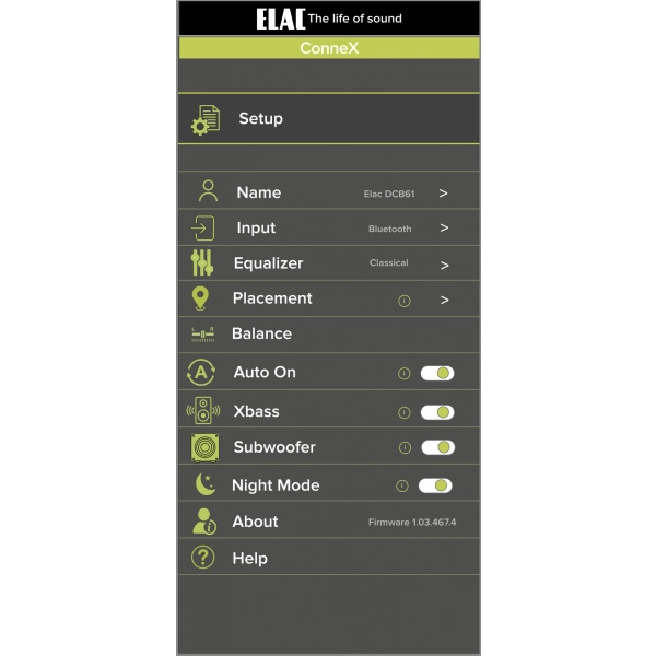 The ELAC ConneX Speaker features a custom-designed app for effortless setup and control. Easily fine-tune EQ settings, optimize placement, adjust Auto On, and manage volume—all from your smartphone. Experience seamless configuration and personalized sound at your fingertips.