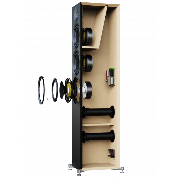 All Debut 3.0 models utilize strategically placed internal bracing reinforcing the cabinet structure, effectively minimizing resonances and unwanted vibrations, thereby improving the clarity and accuracy of sound reproduction. This results in a more accurate reproduction of audio, as it ensures that sound is primarily emitted from the speaker drivers.